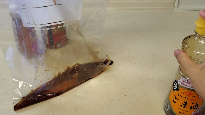 - なるべく空気を抜きながら、ジップロックの蓋を閉めます。まだ熱々の状態だと思いますので、3~4時間は常温の空間に置いておきつつ、ときどき裏表を返します。半日くらいである程度味が染みますので、当日中に食べる方は、昼くらいに作っておくと良いと思います。